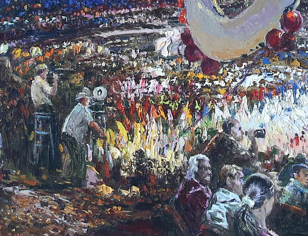 六、朝鮮藝術(shù)創(chuàng)作的“盤子”很大,目前有成立于1949年的平壤美術(shù)大學(xué),成立于1959年的萬壽臺創(chuàng)作社,還有中央美術(shù)創(chuàng)作社,白虎創(chuàng)作社、高麗美術(shù)創(chuàng)作社、鐵道美術(shù)創(chuàng)作社以及省道的美術(shù)創(chuàng)作社等等大批專業(yè)的美術(shù)創(chuàng)作機(jī)構(gòu),培養(yǎng)了大量專業(yè)藝術(shù)家。從“資源”角度看,朝鮮藝術(shù)的“質(zhì)與量”都可以保證未來藝術(shù)市場的擴(kuò)張需求。