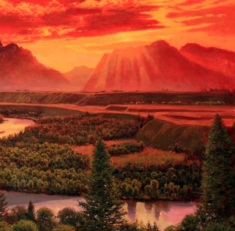 畫名:紅霞下的山川