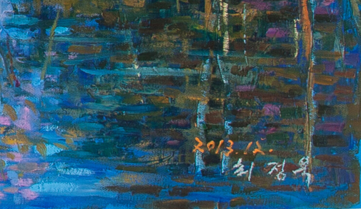 ? ? ? ? 一件作品價(jià)值的大小于這件作品出自誰(shuí)之手有著密切的關(guān)系,崔正旭的畫不僅從畫面的顏色還是從藝術(shù)家考慮的角度都是細(xì)膩有序。崔正旭用他標(biāo)志性的畫作符號(hào)“鳥巢”作點(diǎn)睛,將朝鮮的大好秀美自然風(fēng)光用最質(zhì)樸的筆調(diào)描摹淋淋盡致,線條明晰,顏色搭配有致,濃淡相宜,色澤明麗又不失富麗堂皇之感。作為朝鮮半島具有代表性的藝術(shù)家,崔正旭具備獨(dú)特、鮮明、穩(wěn)定的藝術(shù)風(fēng)格,廣受歐美藝術(shù)界好評(píng),是具有國(guó)際視野潛力的朝鮮藝術(shù)家之一。其原創(chuàng)不類同的創(chuàng)作風(fēng)格,作品的民族性和時(shí)代符號(hào)十足,觀念前衛(wèi)大膽,發(fā)人深思。與中國(guó)許多寫實(shí)主義藝術(shù)家相比,畫面更加沉靜,美得讓人窒息。藝術(shù)之美在崔正旭手中發(fā)揮到極致。我們可以在崔正旭的油畫作品中,看到對(duì)藝術(shù)追求的一種無我的淡泊、灑脫,具有至上的高貴的內(nèi)涵。我們能感覺到朝鮮藝術(shù)家對(duì)于藝術(shù)創(chuàng)作心靜如水,細(xì)膩雅潔,他們深入到社會(huì)現(xiàn)實(shí)中認(rèn)真創(chuàng)作,忠實(shí)相應(yīng)“藝術(shù)家是人民的維護(hù)者和教育者,他們熱愛人民的生活,提高人民的理想生活,并鼓舞人民出色地實(shí)現(xiàn)這一理想”(金正日),創(chuàng)作出至美至善的純潔迷人的藝術(shù)作品。朝鮮藝術(shù)家那種對(duì)于藝術(shù)的發(fā)自內(nèi)心的虔誠(chéng)和堅(jiān)守讓人感動(dòng)。