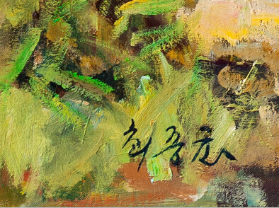 多年的創(chuàng)作活動(dòng)中,作品獲得了許多金牌,是一位大有發(fā)展前途的畫家。作品栩栩如生,形象逼真,色彩艷麗明快,細(xì)節(jié)處精微動(dòng)人。筆觸細(xì)小,色彩配置過渡非常的微妙、豐富、沉穩(wěn)與厚實(shí),深沉的綠色突出畫面的沉穩(wěn)、穩(wěn)健氣息,呈現(xiàn)出安寧、靜迤的氛圍。