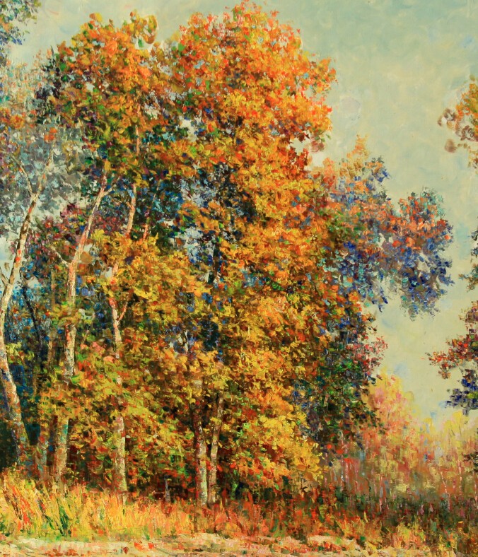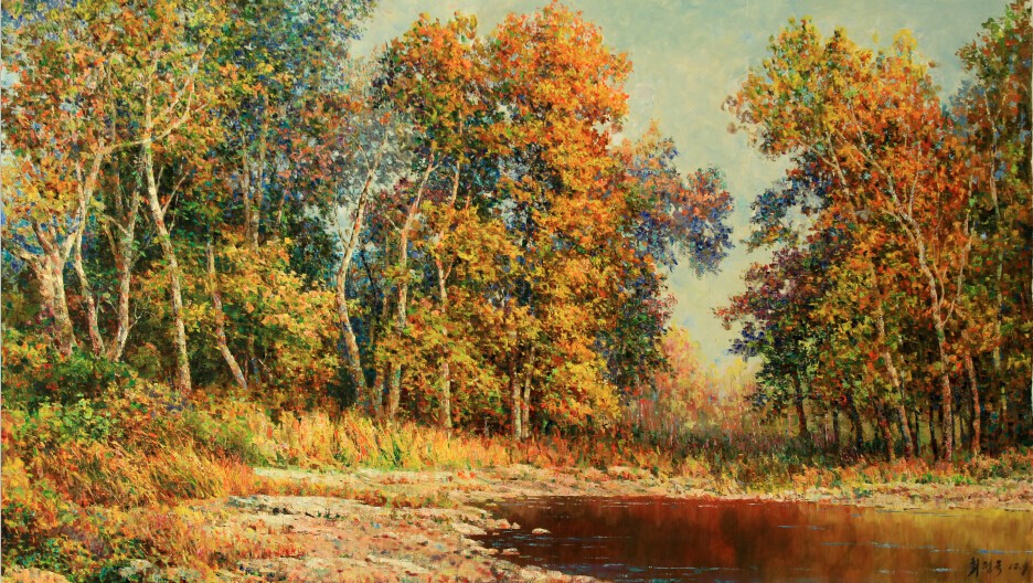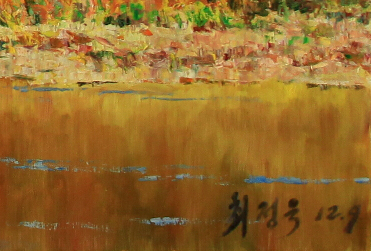 一件作品價(jià)值的大小于這件作品出自誰之手有著密切的關(guān)系,崔正旭的畫不僅從畫面的顏色還是從藝術(shù)家考慮的角度都是細(xì)膩有序。崔正旭用他標(biāo)志性的畫作符號(hào)“鳥巢”作點(diǎn)睛,將朝鮮的大好秀美自然風(fēng)光用最質(zhì)樸的筆調(diào)描摹淋淋盡致,線條明晰,顏色搭配有致,濃淡相宜,色澤明麗又不失富麗堂皇之感。作為朝鮮半島具有代表性的藝術(shù)家,崔正旭具備獨(dú)特、鮮明、穩(wěn)定的藝術(shù)風(fēng)格,廣受歐美藝術(shù)界好評(píng),是具有國際視野潛力的朝鮮藝術(shù)家之一。其原創(chuàng)不類同的創(chuàng)作風(fēng)格,作品的民族性和時(shí)代符號(hào)十足,觀念前衛(wèi)大膽,發(fā)人深思。與中國許多寫實(shí)主義藝術(shù)家相比,畫面更加沉靜,美得讓人窒息。藝術(shù)之美在崔正旭手中發(fā)揮到極致。我們可以在崔正旭的油畫作品中,看到對藝術(shù)追求的一種無我的淡泊、灑脫,具有至上的高貴的內(nèi)涵。我們能感覺到朝鮮藝術(shù)家對于藝術(shù)創(chuàng)作心靜如水,細(xì)膩雅潔,他們深入到社會(huì)現(xiàn)實(shí)中認(rèn)真創(chuàng)作,忠實(shí)相應(yīng)“藝術(shù)家是人民的維護(hù)者和教育者,他們熱愛人民的生活,提高人民的理想生活,并鼓舞人民出色地實(shí)現(xiàn)這一理想”(金正日),創(chuàng)作出至美至善的純潔迷人的藝術(shù)作品。朝鮮藝術(shù)家那種對于藝術(shù)的發(fā)自內(nèi)心的虔誠和堅(jiān)守讓人感動(dòng)。