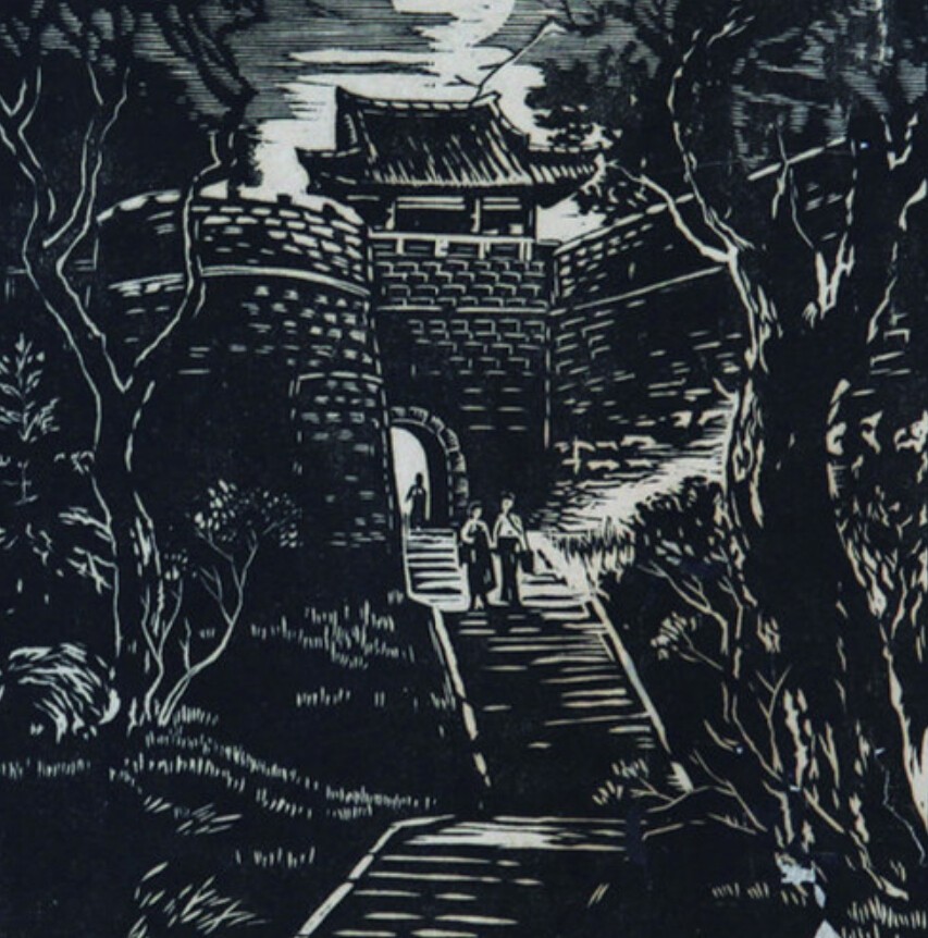 咸彰然,在朝鮮畫壇享有“功勛藝術(shù)家”稱號(hào),曾擔(dān)任平壤美術(shù)大學(xué)科學(xué)部部長(zhǎng)。早年在波蘭華沙美術(shù)大學(xué)留學(xué),他的版畫作品曾多次參加國(guó)際版畫大賽,并與舉世聞名的藝術(shù)巨匠畢加索并列第一榮獲金獎(jiǎng)。他的黑白木刻版畫,單純質(zhì)樸、生動(dòng)灑落,既吸取了西方的現(xiàn)代派藝術(shù)風(fēng)格與蘇聯(lián)版畫的現(xiàn)實(shí)主義精神,又兼有民族本土化的藝術(shù)特色,從而形成了具有強(qiáng)烈藝術(shù)感染力的個(gè)性化刀木語言。咸彰然將內(nèi)心中無法言說的情境直覺地流淌于刀尖,重新賦予了生命以單純的形式,為世人塑造了一個(gè)個(gè)美侖美奐的黑與白的獨(dú)特世界。