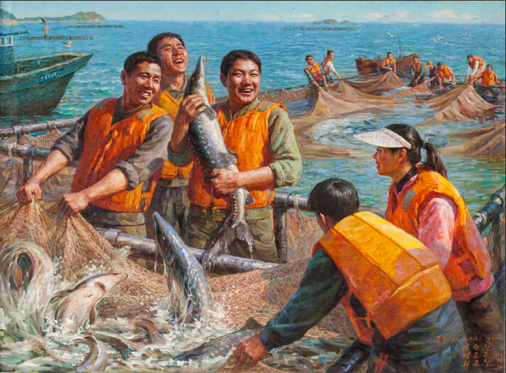 畫名:鱘魚海洋養(yǎng)殖的喜悅