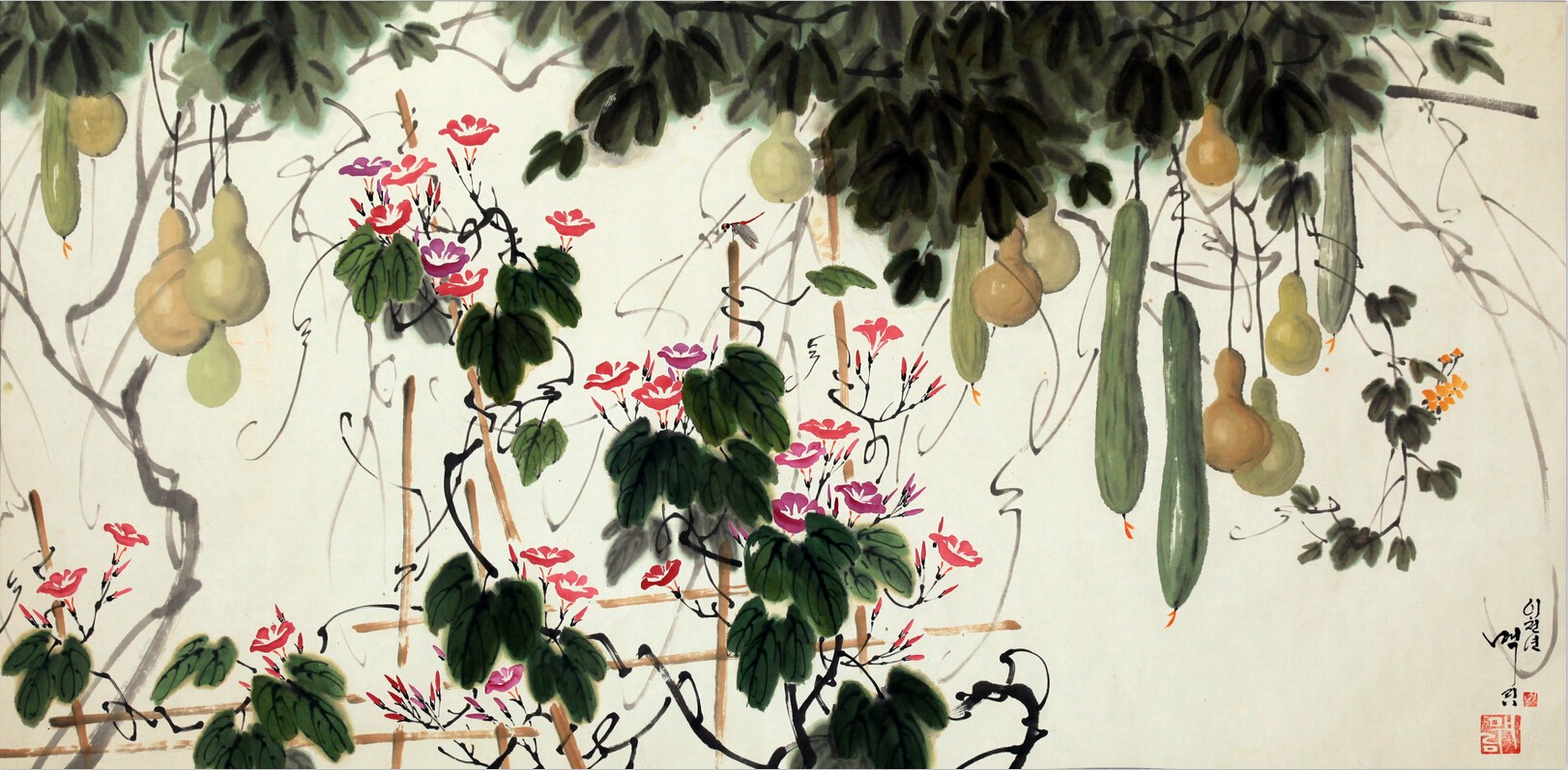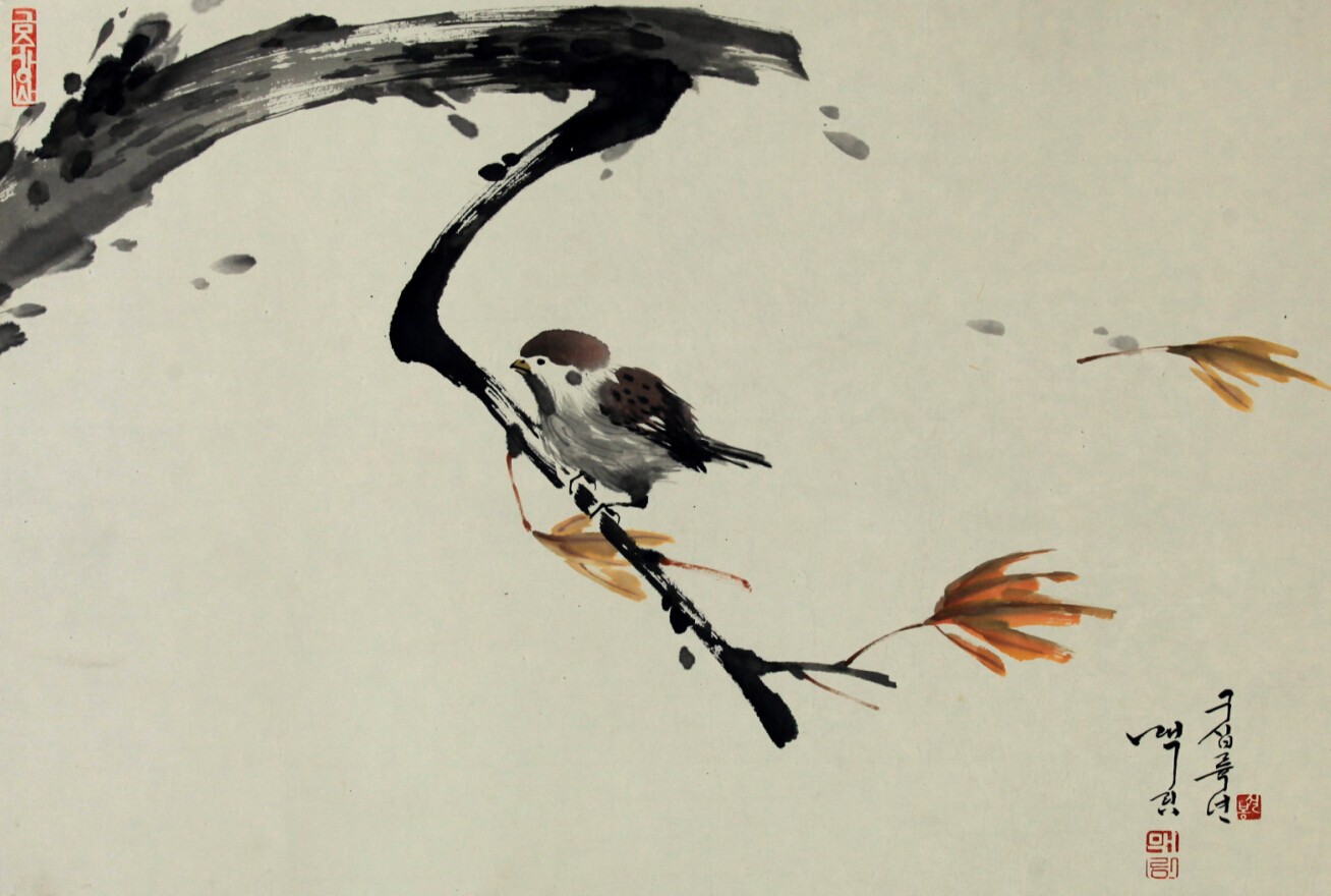 《藤花和三光鳥(niǎo)》(1984年 朝鮮美術(shù)博物館收藏)