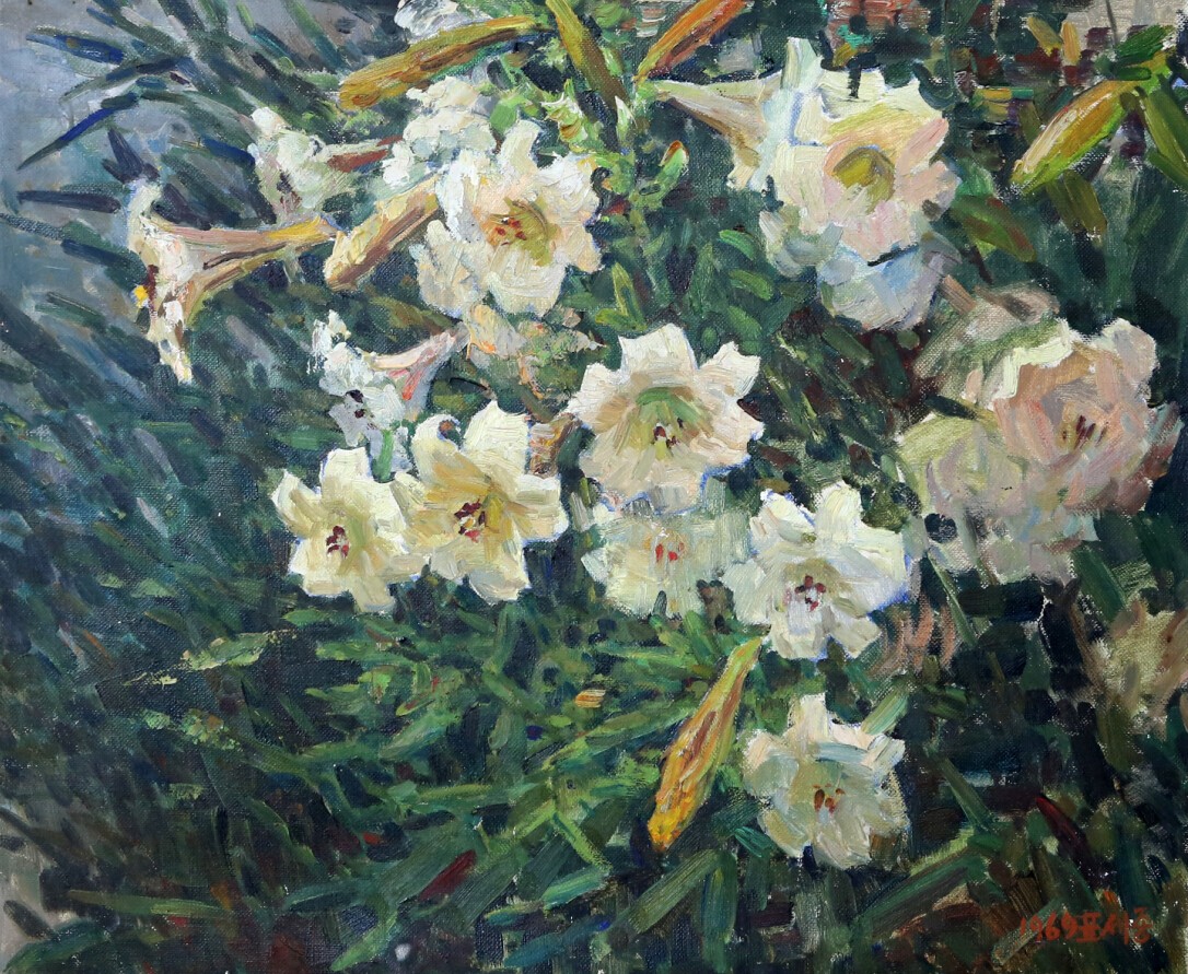 我們能看到他的創(chuàng)作成績,在他走上創(chuàng)作之路后他幾乎所有的國家美術展覽會,部分展覽會都參加,作品形象姿勢都很真摯,他創(chuàng)作了很多有分量又深刻的主題畫。通過這樣的作品給予了勤勞者革命的階級的積極修養(yǎng)。