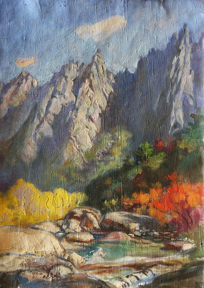 這一時(shí)期在創(chuàng)作上也嘔心瀝血。解放后,創(chuàng)作油畫(huà)《金日成將軍肖像》(1948,30號(hào)),《金剛山》(1948),《祖國(guó)防衛(wèi)的力量》(1948,100號(hào))等。