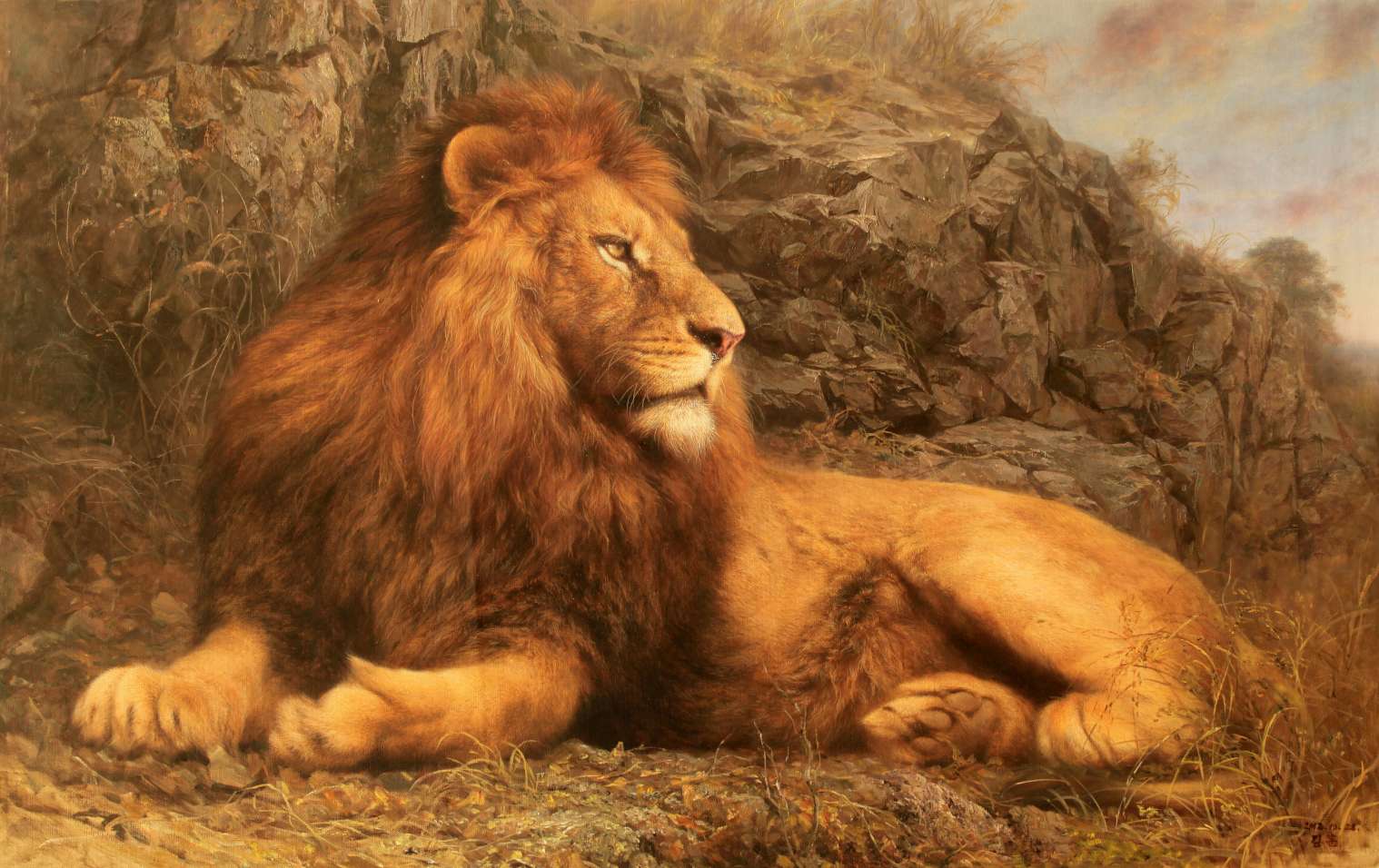 金勛,朝鮮萬壽臺海外開發(fā)集團(tuán)的油畫創(chuàng)作家中實(shí)力和潛力畫家的代表,油畫創(chuàng)作上在細(xì)畫技法基礎(chǔ)上確立了自己獨(dú)特的個性畫風(fēng),是以畫人物、自然風(fēng)景、老虎及其他動物而聞名的杰出畫家,尤其是表現(xiàn)繪畫對象真實(shí)感的手法達(dá)到了令人驚嘆的程度,在國際上很多國家都享有盛譽(yù)。2003年巴西國際藝術(shù)博覽會上得了一等獎和金獎,2007年作品《老虎》在平壤美展上得金獎和銀獎,代表作有《懸崖絕壁上的老虎》《湖邊的早晨》等。2010年經(jīng)典油畫作品《獅子》在北京拍賣市場中以30萬元高價(jià)成交。2013年金勛作為朝鮮十大著名青年油畫家之一亮相于北京太平洋國際拍賣有限公司秋季拍賣會。大師級的水準(zhǔn)和不菲的藝術(shù)收藏價(jià)值,目前廣受世界收藏者的追捧和青睞。