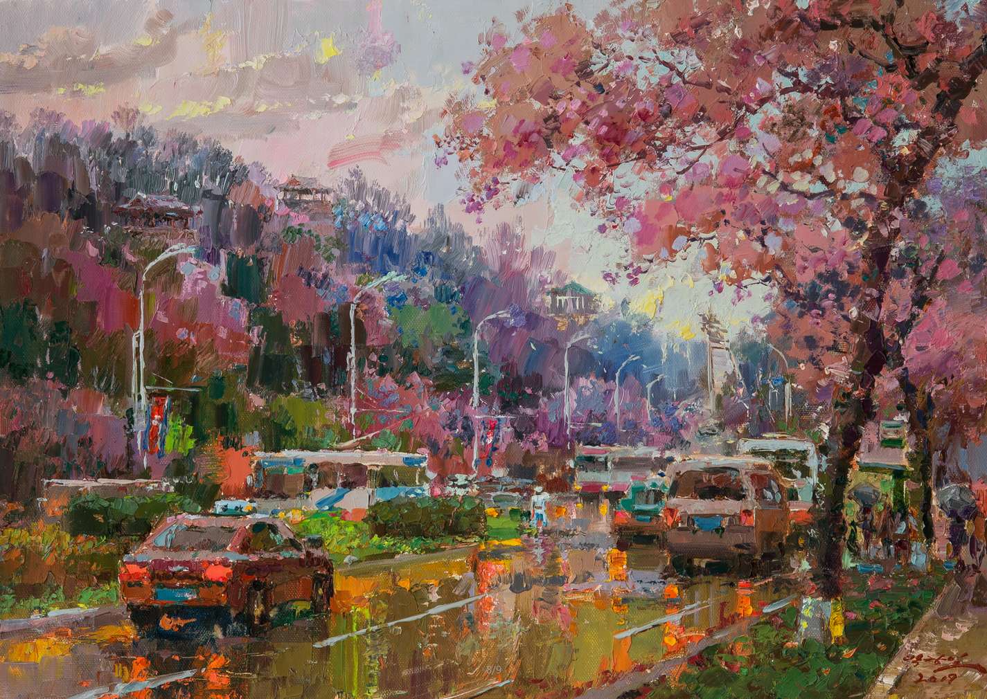 轉(zhuǎn)攻油畫后,創(chuàng)作出了《在看到青石峰的地方》、《正方山成佛寺》、《七星門的秋天》、《胞胎山的春天》等多幅優(yōu)秀的作品。