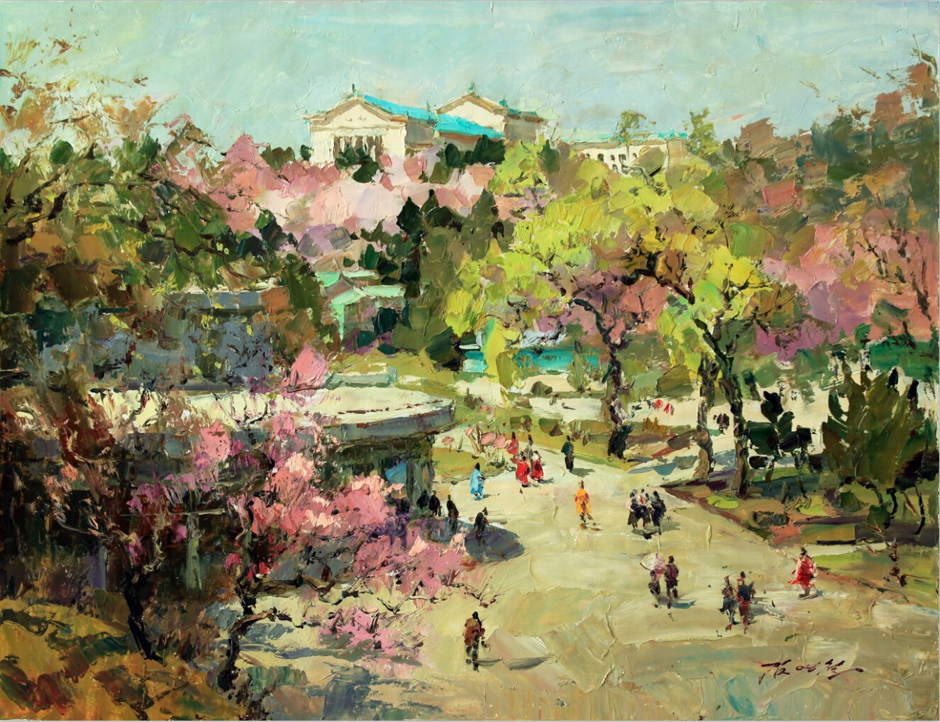 2006年被派往北京開展活動(dòng),并創(chuàng)作發(fā)表了油畫《為了戰(zhàn)爭(zhēng)勝利》、《勞動(dòng)者發(fā)明家》。此外油畫《白雪覆蓋的小白水》《香山泉》等風(fēng)景畫也在國(guó)家美術(shù)展覽會(huì)上大獲好評(píng),代表作油畫《千里馬先頭軍陳應(yīng)元》在國(guó)家美術(shù)展覽會(huì)上獲獎(jiǎng)并被朝鮮美術(shù)博物館收藏。