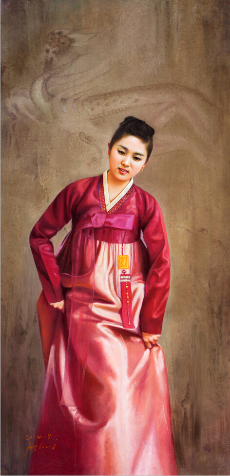 朝鮮一級畫家:白華成作品  《李恩正小姐》  尺幅:160*80  年代:2014年