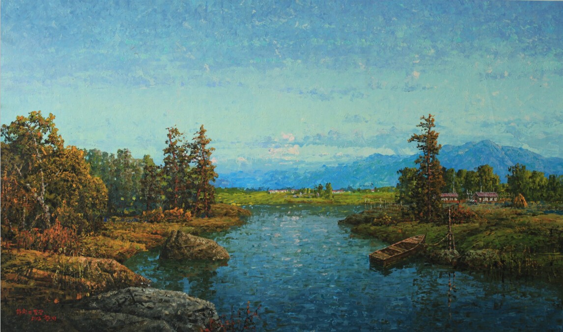 畫名:《華川的南江》 畫家姓名:金昌盛 畫家級別:功勛藝術(shù)家 尺寸:166*100cm 年代:2012年