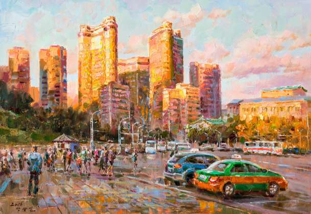 立足鄉(xiāng)土敘事的朝鮮半島的風(fēng)景油畫(huà),雖然跨越了文化差異的藩籬,讓欣賞者從中感受到了美妙之處,山川、田野、河流、民居、鄉(xiāng)路、季相等等,一切在油畫(huà)藝術(shù)的范疇內(nèi)呈現(xiàn)出來(lái)。油畫(huà)這一全球范圍內(nèi)不同種族、文化均可認(rèn)知的藝術(shù)形式,在朝鮮半島北方,有自己的內(nèi)涵和承繼,拓展和融合,其基底是唯美與寫(xiě)實(shí),是自然之愛(ài)、祖國(guó)河山禮贊以及藝術(shù)審美的結(jié)晶。這些風(fēng)景油畫(huà)構(gòu)思和創(chuàng)作過(guò)程中,朝鮮藝術(shù)家們以堅(jiān)定的熱愛(ài)、熱情付諸于創(chuàng)作,自然的美真實(shí)地打動(dòng)了他們,他們也自豪于成為美的發(fā)動(dòng)者和表達(dá)者。這種關(guān)于朝鮮半島北方的鄉(xiāng)村情結(jié),雖然無(wú)法抽離所謂意識(shí)形態(tài)語(yǔ)境,但從風(fēng)景油畫(huà)層面討物朝鮮畫(huà)家是否利用藝術(shù)創(chuàng)作,從而選擇逃避意識(shí)形態(tài)的掌控,顯然很難得出準(zhǔn)確的答案。至少?gòu)娘L(fēng)景油畫(huà)中,可以發(fā)現(xiàn)有很多藝術(shù)家選擇了孤獨(dú),這中間既有藝術(shù)創(chuàng)作的學(xué)術(shù)抉擇,也有藝術(shù)家個(gè)性的助力。從作品的文本解解析層面,不難察覺(jué)超越朝鮮現(xiàn)實(shí)語(yǔ)境的價(jià)值。從一九七八年以來(lái),中國(guó)的改革開(kāi)放進(jìn)程就是不斷所謂與國(guó)際接軌的過(guò)程,甚至越接軌越需要接軌,這樣一個(gè)現(xiàn)實(shí)語(yǔ)境在二十一世界開(kāi)始有了反思。敞開(kāi)懷抱,海納萬(wàn)川是最重要的接軌。