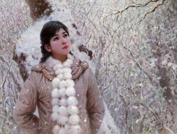 有人說(shuō)“回溯傳統(tǒng)民族文化,已成為當(dāng)下中國(guó)油畫(huà)在學(xué)術(shù)上展示中華文化傳承、地域風(fēng)貌特色的主流”。從朝鮮藝術(shù)的發(fā)展歷程看,尤其一九五三年以后的當(dāng)代藝術(shù)六十多年的發(fā)展看,無(wú)論對(duì)外交流是一個(gè)什么深度,他們都堅(jiān)持所謂民族化、本土化的努力方向。這一方向的進(jìn)程和結(jié)果是學(xué)術(shù)問(wèn)題,但這一進(jìn)程是清晰、明確的。所以,我們發(fā)現(xiàn)朝鮮藝術(shù)與我們想象的完全不一樣。