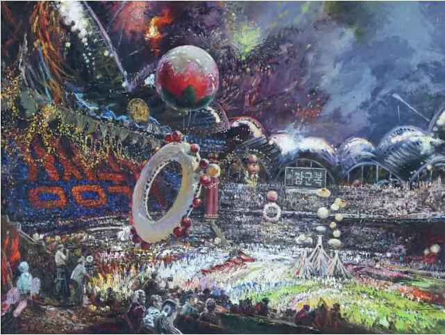 當(dāng)下朝鮮的社會(huì)語(yǔ)境和當(dāng)下朝鮮的美術(shù),看似是我們的(或歷史曾經(jīng)的)某種“過(guò)去時(shí)態(tài)”,或者說(shuō)我們?yōu)榱藢ふ谊U釋路徑,而將其放置于易于比較的某個(gè)歷史時(shí)段。顯然,朝鮮美術(shù)帶給當(dāng)下世界的陌生化,迫使面對(duì)者不得不對(duì)其予以歸類(lèi),以便找到判斷的角度和理由。似乎當(dāng)下所謂的地球村或扁平化的世界,在朝鮮那兒突然隆起抑或凹陷。問(wèn)題是我們是否缺乏清晰且平等面對(duì)這一“他者”的心態(tài)。尤其就當(dāng)前世界藝術(shù)第二大市場(chǎng)而言,集體失語(yǔ)、不肯直視是否妥當(dāng)?