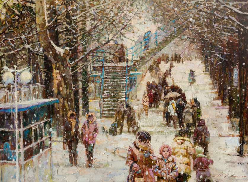 很多時(shí)候,我們?yōu)槌r藝術(shù)的抵達(dá)尋找合適的理由,而歐美藝術(shù)的抵達(dá)則從不需要任何理由,甚至其它所謂第三世界國(guó)家的藝術(shù)也不須理由。顯然,這也并非是一定要給出結(jié)論的命題,也不需要在場(chǎng)的朝鮮藝術(shù)給出什么答案。很難有人給出也無(wú)法確切每年有多少朝鮮美術(shù)作品進(jìn)入中國(guó)市場(chǎng)。關(guān)鍵是我們必須知道中國(guó)藝術(shù)品市場(chǎng)已呈現(xiàn)出巨大的吸納能力,呈現(xiàn)出歐美藝術(shù)來(lái)博眼球(也砸扛),亞非拉藝術(shù)來(lái)淘金,本土藝術(shù)趾高氣昂這樣一種態(tài)勢(shì)。接下來(lái)也許是全球整合資源,也許僅僅是消費(fèi)大潮而已。所以, 大的格局決定一切只不過(guò)是某種機(jī)緣,朝鮮藝術(shù)來(lái)的早些、巧些,且跑的并不慢而已。