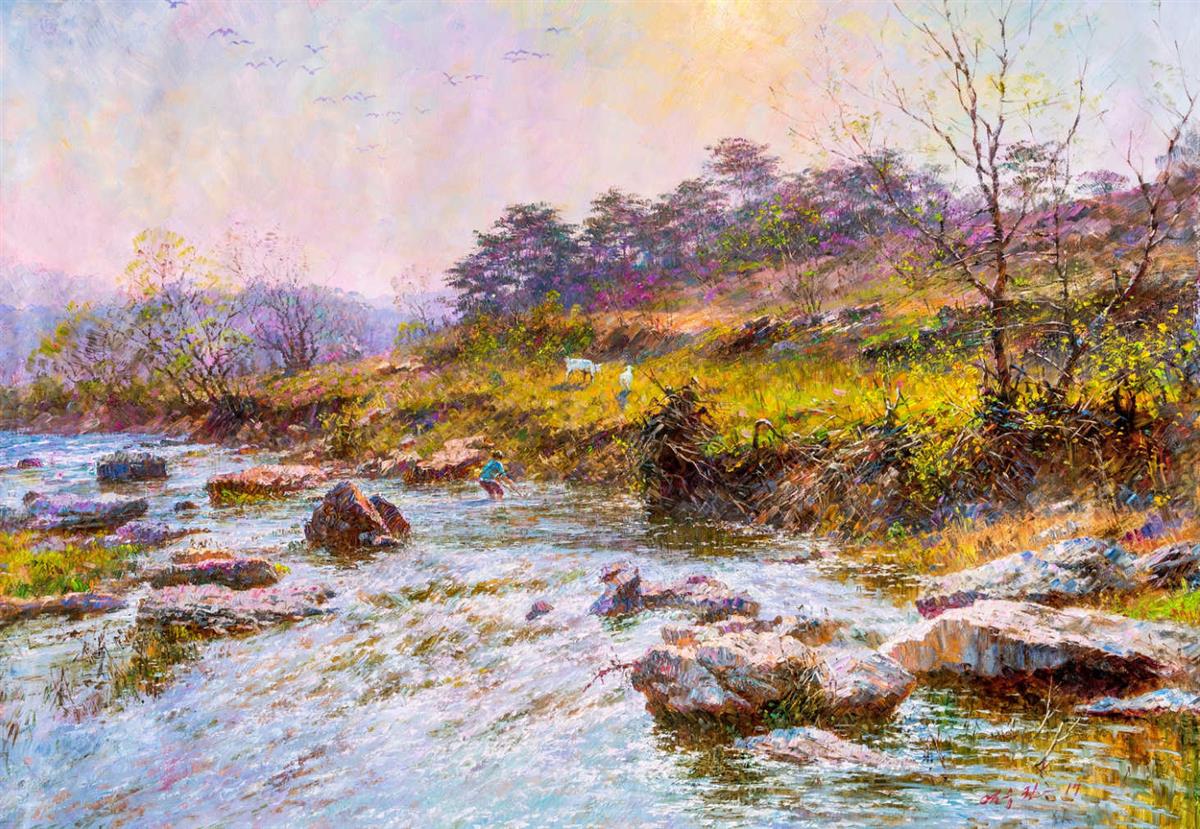 有人說“回溯傳統(tǒng)民族文化,已成為當(dāng)下中國(guó)油畫在學(xué)術(shù)上展示中華文化傳承、地域風(fēng)貌特色的主流”。從朝鮮藝術(shù)的發(fā)展歷程看,尤其一九五三年以后的當(dāng)代藝術(shù)六十多年的發(fā)展看,無論對(duì)外交流是一個(gè)什么深度,他們都堅(jiān)持所謂民族化、本土化的努力方向。這一方向的進(jìn)程和結(jié)果是學(xué)術(shù)問題,但這一進(jìn)程是清晰、明確的。所以,我們發(fā)現(xiàn)朝鮮藝術(shù)與我們想象的完全不一樣。