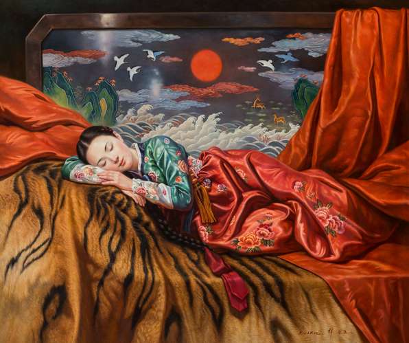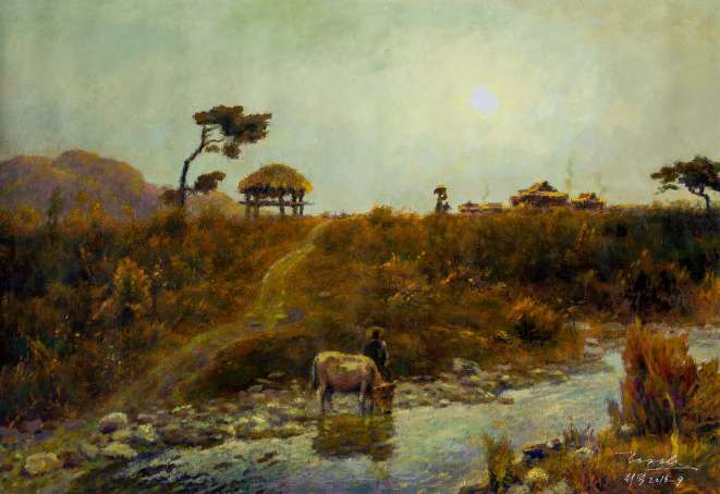 有人說“回溯傳統(tǒng)民族文化,已成為當(dāng)下中國油畫在學(xué)術(shù)上展示中華文化傳承、地域風(fēng)貌特色的主流”。從朝鮮藝術(shù)的發(fā)展歷程看,尤其一九五三年以后的當(dāng)代藝術(shù)六十多年的發(fā)展看,無論對外交流是一個(gè)什么深度,他們都堅(jiān)持所謂民族化、本土化的努力方向。這一方向的進(jìn)程和結(jié)果是學(xué)術(shù)問題,但這一進(jìn)程是清晰、明確的。所以,我們發(fā)現(xiàn)朝鮮藝術(shù)與我們想象的完全不一樣。