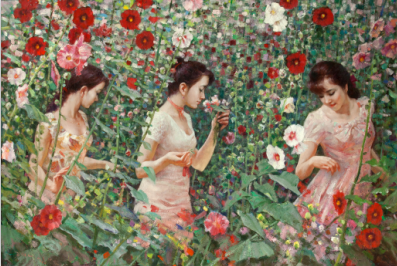 金勝男  《花叢中的少女們》160*107                                                                         金光浩  《荷花》160*100