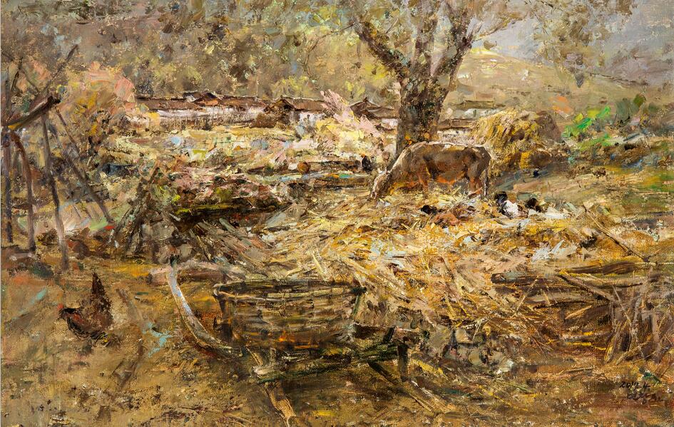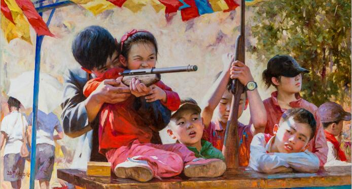 我們從今年來中國創(chuàng)作的朝鮮藝術(shù)家身上,看到了作為職業(yè)畫家的工匠精神,盡管有人覺得他的體制決定了他們的任勞任怨。但是沒有激情和動力,又不是畫行畫,我們只能佩服這種毅力。藝術(shù)成就的取得自然有諸多因素。但是,樂此不疲的創(chuàng)作,每天超過十個小時的創(chuàng)作,恐怕不能用任勞任怨來解說吧。尤其是這種創(chuàng)作狀態(tài),不是幾個畫家,而是這個群體。他們身上有一股“勁兒”,每天這勁兒都如同上足了弦。