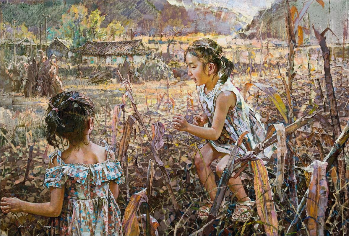 如上所述,當(dāng)下朝鮮的歷史語(yǔ)境、社會(huì)語(yǔ)境被朝鮮藝術(shù)所詮釋。并且在一九五三年以來(lái)的漫長(zhǎng)時(shí)空中自說(shuō)自話、自力更生?,F(xiàn)在其走出國(guó)門(mén),正式進(jìn)入全球第二大藝術(shù)品市場(chǎng)之后,的確驟然凸顯時(shí)空錯(cuò)位的現(xiàn)實(shí),如何理解朝鮮藝術(shù)與當(dāng)下世界藝術(shù)的發(fā)展錯(cuò)位,實(shí)際上拷問(wèn)了第二大藝術(shù)品市場(chǎng)的國(guó)際化程度和大國(guó)情懷。顯然,不聞不問(wèn),任其自生自滅或集體失語(yǔ)是不對(duì)的。盡管我們知曉“任何藝術(shù)史的書(shū)寫(xiě)始終都會(huì)從某種立場(chǎng)和視角出發(fā)”(毛娟語(yǔ)),卻仍未將六十多年以來(lái)的朝鮮藝術(shù)發(fā)展歷程,實(shí)施文化考察或歷史觀看。藝術(shù)需要接地氣兒,幾乎沒(méi)有藝術(shù)品市場(chǎng)的朝鮮恰好有這么多能夠接地氣兒的藝術(shù)家。他們創(chuàng)作著接地氣兒的作品。他們并不知道這些作品的市場(chǎng)未來(lái)會(huì)在哪里,會(huì)帶來(lái)多大的金錢(qián)收益。但他們努力在無(wú)法疏離的社會(huì)語(yǔ)境中實(shí)現(xiàn)藝術(shù)理想。意識(shí)形態(tài)雖然讓其必須為社會(huì)主義建設(shè)歌功頌德,但藝術(shù)天分讓他們以自己的語(yǔ)言方式完成藝術(shù)民族化的進(jìn)程。雖然當(dāng)下只有中國(guó)藝術(shù)品市場(chǎng)在嘗試接受來(lái)自半島以北的繪畫(huà)藝術(shù),但朝鮮藝術(shù)能夠走出國(guó)門(mén),能展示于全球第二大藝術(shù)品市場(chǎng),并被許許多多藏家購(gòu)藏,其實(shí)已經(jīng)預(yù)示著離開(kāi)中國(guó),“再國(guó)際化”的可能。