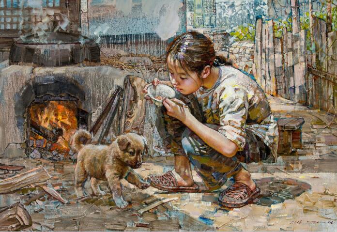 我們從今年來中國創(chuàng)作的朝鮮藝術(shù)家身上,看到了作為職業(yè)畫家的工匠精神,盡管有人覺得他的體制決定了他們的任勞任怨。但是沒有激情和動(dòng)力,又不是畫行畫,我們只能佩服這種毅力。藝術(shù)成就的取得自然有諸多因素。但是,樂此不疲的創(chuàng)作,每天超過十個(gè)小時(shí)的創(chuàng)作,恐怕不能用任勞任怨來解說吧。尤其是這種創(chuàng)作狀態(tài),不是幾個(gè)畫家,而是這個(gè)群體。他們身上有一股“勁兒”,每天這勁兒都如同上足了弦。