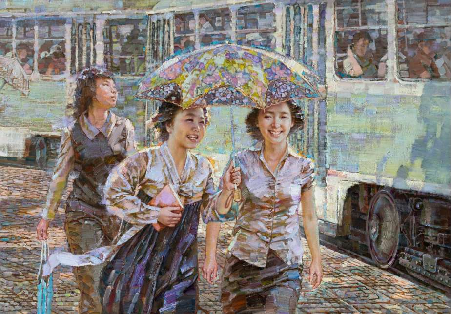 作為特殊歷史時期的藝術(shù)現(xiàn)象,朝鮮藝術(shù)的大規(guī)模輸出,實際上已經(jīng)啟動了又一個歷史單元的序幕。應(yīng)該說啟幕的耗時并不暫短,差不多從二十世紀九十年代中后期就開始了。這一情況讓許多人困惑,如此多的作品、如此多的藝術(shù)家、如此大的輸出,怎么未見當(dāng)前朝鮮藝術(shù)在國際化背景下的明顯裂變?似乎還有些關(guān)注者希望是某種“巨變”。其實答案很簡單,朝鮮藝術(shù)在輸出的同時,也在“補課”。藝術(shù)家們在堅守當(dāng)前的朝鮮藝術(shù)風(fēng)貌的同時,不斷將此前接觸不多、了解不到的東西,消化在輸出的進程中。這一學(xué)習(xí)的過程被遮掩在看似固執(zhí)的原創(chuàng)朝鮮藝術(shù)之中。