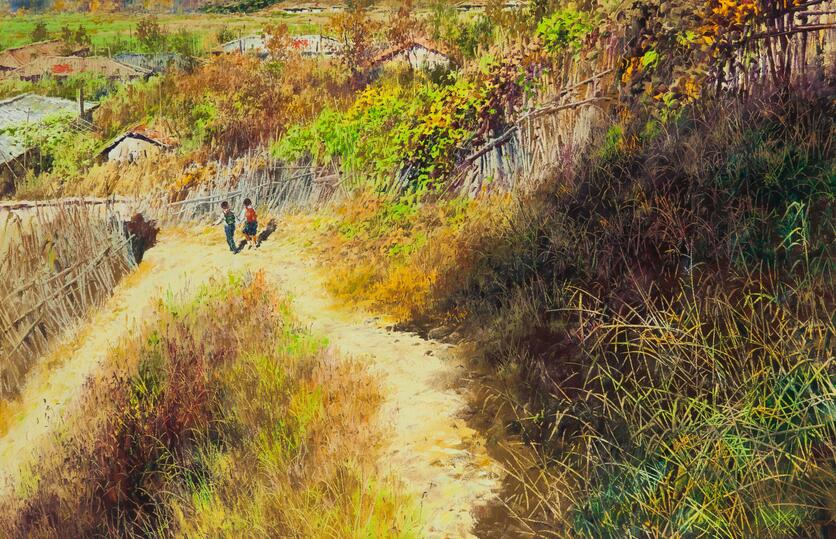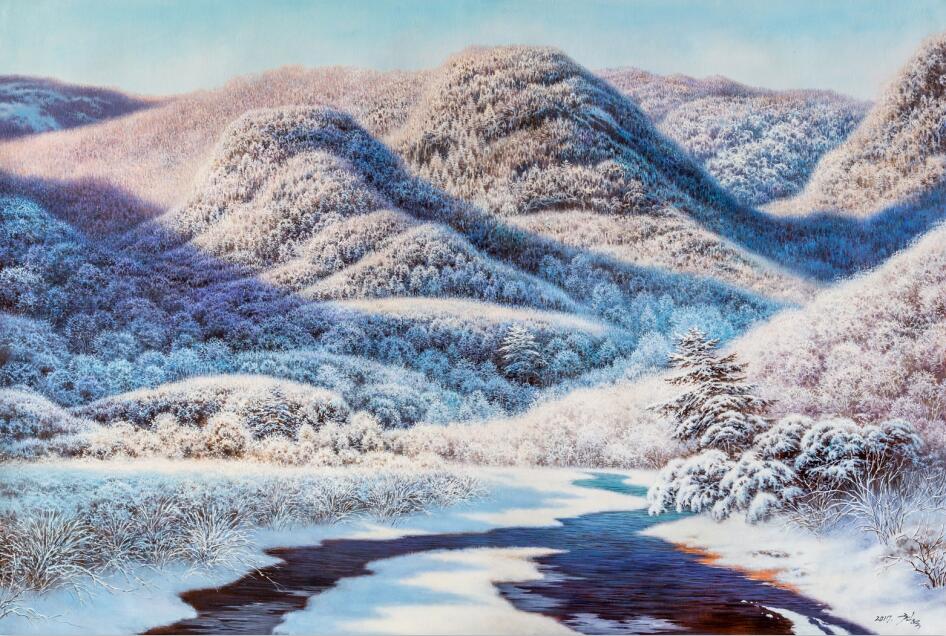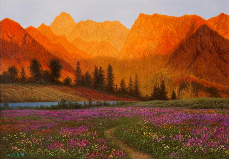我們從今年來中國創(chuàng)作的朝鮮藝術家身上,看到了作為職業(yè)畫家的工匠精神,盡管有人覺得他的體制決定了他們的任勞任怨。但是沒有激情和動力,又不是畫行畫,我們只能佩服這種毅力。藝術成就的取得自然有諸多因素。但是,樂此不疲的創(chuàng)作,每天超過十個小時的創(chuàng)作,恐怕不能用任勞任怨來解說吧。尤其是這種創(chuàng)作狀態(tài),不是幾個畫家,而是這個群體。他們身上有一股“勁兒”,每天這勁兒都如同上足了弦。