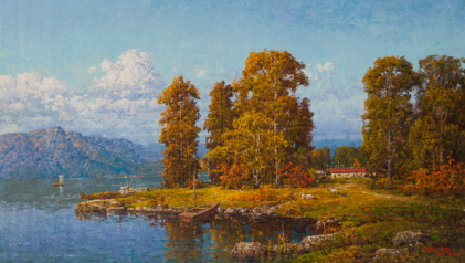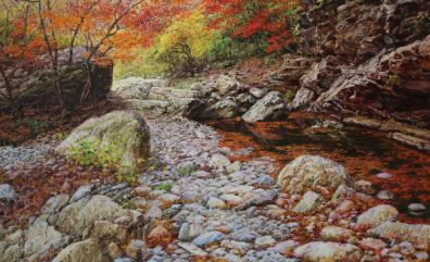 柳權哲 《秋日森林》 164*105                                                                             金昌盛 《西興湖初秋》  160*100