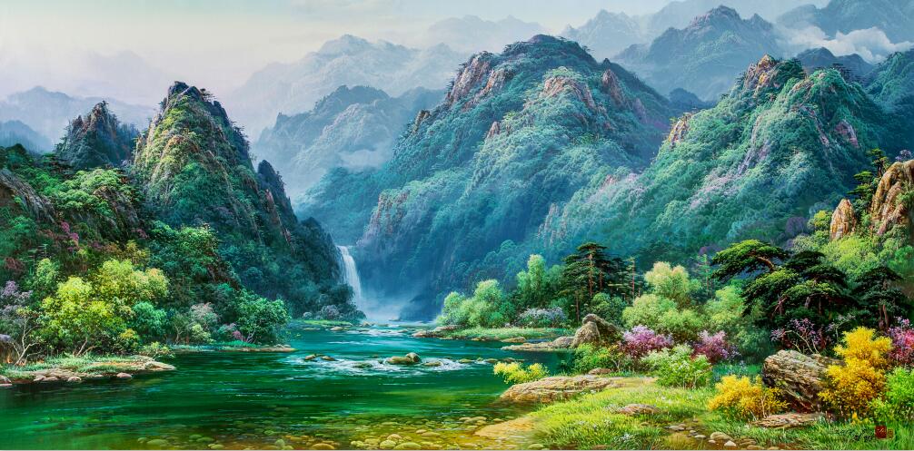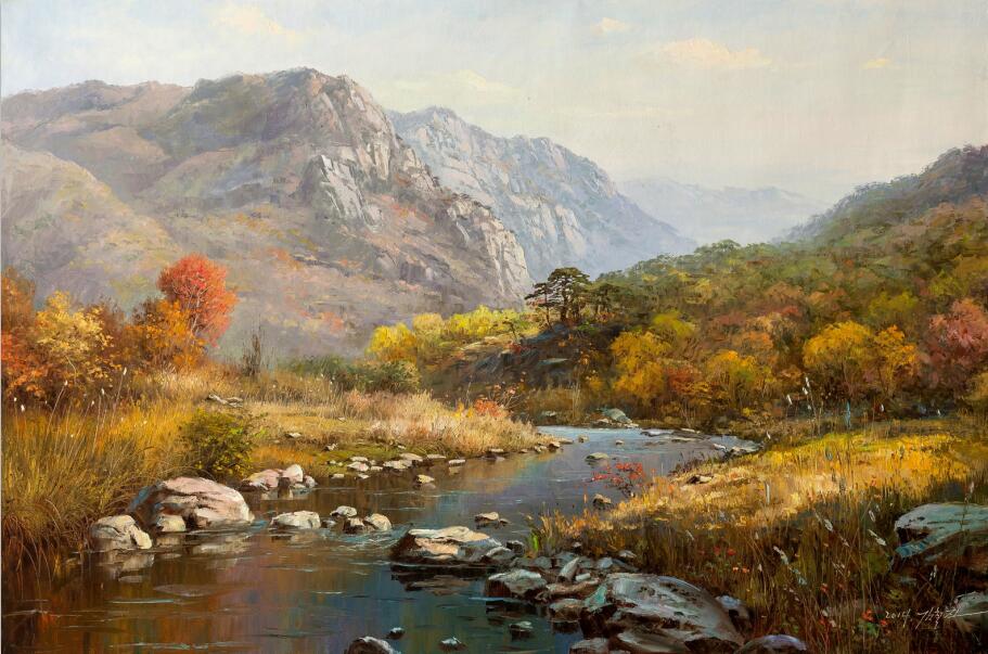 十幾年近距離觀察朝鮮藝術(shù),感到許多名不見(jiàn)經(jīng)傳的朝鮮風(fēng)景畫(huà)家的作品,反倒有很好的藝術(shù)價(jià)值。他們中的許多畫(huà)家往往只畫(huà)些表達(dá)性情的東西,或是某種生活向往。這一類作品沒(méi)有所謂主題思想或是社會(huì)主義建設(shè)之類的宏大主題。尤其表現(xiàn)鄉(xiāng)村生活感受和鄉(xiāng)土記憶題材的創(chuàng)作。比如盧申賢作品,大都只表達(dá)黃海北道某一個(gè)鄉(xiāng)村的人文風(fēng)情、地貌特點(diǎn)。反復(fù)地畫(huà),就仿佛一生的努力都寄托在這狹小的日常之中。