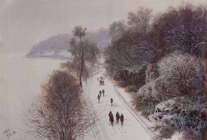 如上所述,當下朝鮮的歷史語境、社會語境被朝鮮藝術(shù)所詮釋。并且在一九五三年以來的漫長時空中自說自話、自力更生?,F(xiàn)在其走出國門,正式進入全球第二大藝術(shù)品市場之后,的確驟然凸顯時空錯位的現(xiàn)實,如何理解朝鮮藝術(shù)與當下世界藝術(shù)的發(fā)展錯位,實際上拷問了第二大藝術(shù)品市場的國際化程度和大國情懷。顯然,不聞不問,任其自生自滅或集體失語是不對的。盡管我們知曉“任何藝術(shù)史的書寫始終都會從某種立場和視角出發(fā)”(毛娟語),卻仍未將六十多年以來的朝鮮藝術(shù)發(fā)展歷程,實施文化考察或歷史觀看。藝術(shù)需要接地氣兒,幾乎沒有藝術(shù)品市場的朝鮮恰好有這么多能夠接地氣兒的藝術(shù)家。他們創(chuàng)作著接地氣兒的作品。他們并不知道這些作品的市場未來會在哪里,會帶來多大的金錢收益。但他們努力在無法疏離的社會語境中實現(xiàn)藝術(shù)理想。意識形態(tài)雖然讓其必須為社會主義建設(shè)歌功頌德,但藝術(shù)天分讓他們以自己的語言方式完成藝術(shù)民族化的進程。雖然當下只有中國藝術(shù)品市場在嘗試接受來自半島以北的繪畫藝術(shù),但朝鮮藝術(shù)能夠走出國門,能展示于全球第二大藝術(shù)品市場,并被許許多多藏家購藏,其實已經(jīng)預(yù)示著離開中國,“再國際化”的可能。