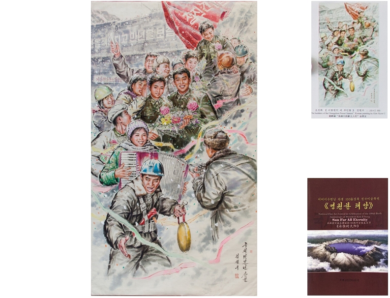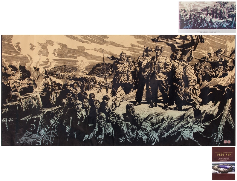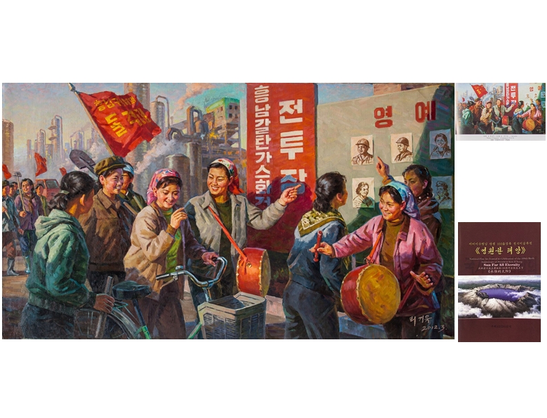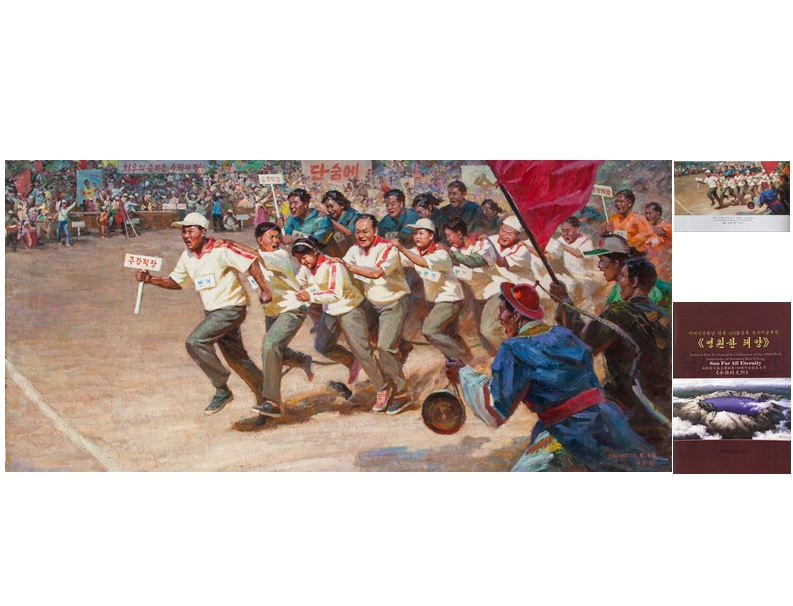 • 畫家姓名:樸明哲、金革 畫名:《取得勝利的人民》 尺幅:185x80(cm)