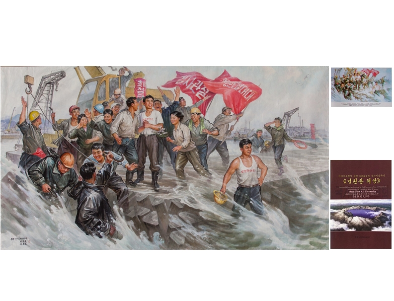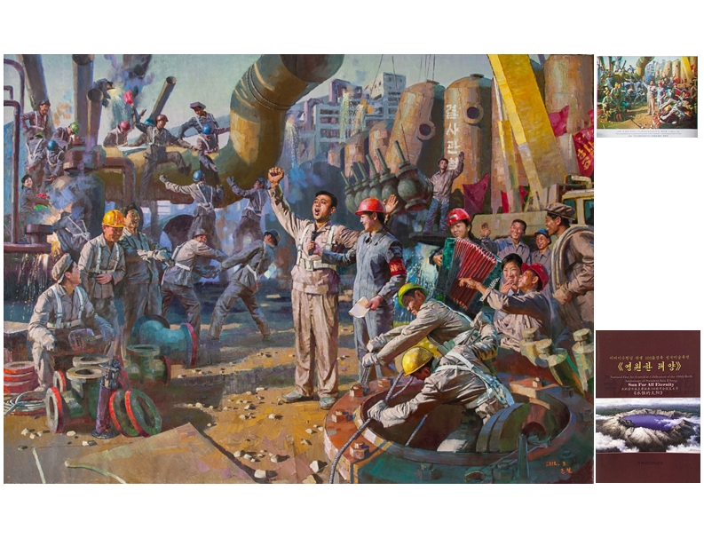 • 畫家姓名:金俊哲、金哲俊 畫名:《端川港上的勝利歡呼聲》 尺幅:249x140(cm) 年代:2012年