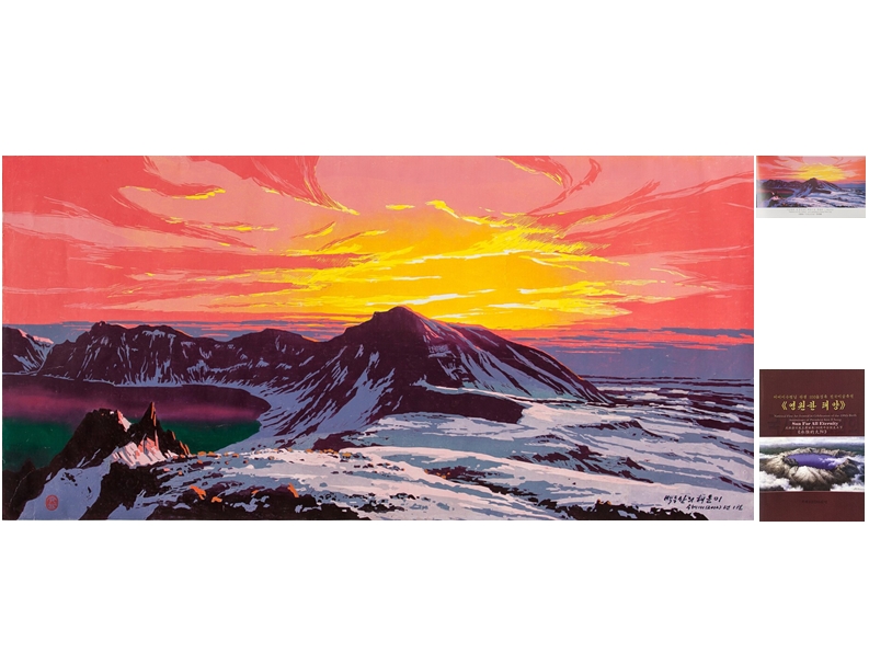 • 畫家姓名:洪春雄 畫名:《白頭山日出》 尺幅:106x51(cm) 年代:2012年